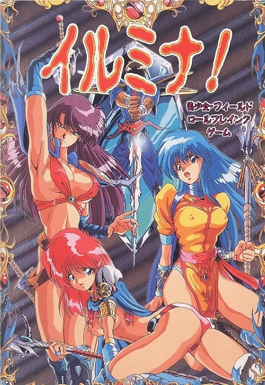 A young man wakes up, only to find himself in a bed, in an unknown house, in an unknown place. A lovely girl enters. She says that her name is Ryuuna and that she is practicing the art of White Magic as a priest. However, the young man cannot remember anything. He cannot even remember his own name. Ryuuna says that he was found unconscious outside of the village, with a pendant lying nearby. There is just one name written there, his name: Seraphis. Also, there is a strange engraving on his hand. Who is he really? Illumina is a rather basic Japanese-style RPG. The party of the heroes walk over the top-down world map, visiting towns and descending into dungeons. With a few exceptions, the towns are displayed as identically-looking pictures of locations, with menu-based navigation, Wizardry-style. The random, turn-based battles are also first-person, but the dungeons have the same top-down view as the map. Playable characters belong to defined classes (such as Ryuuna being a priest with various white magic spells that can be leveled up). If any character is killed in a battle, it's Game Over. There are several scenes with nudity and sexual situations in the game.
