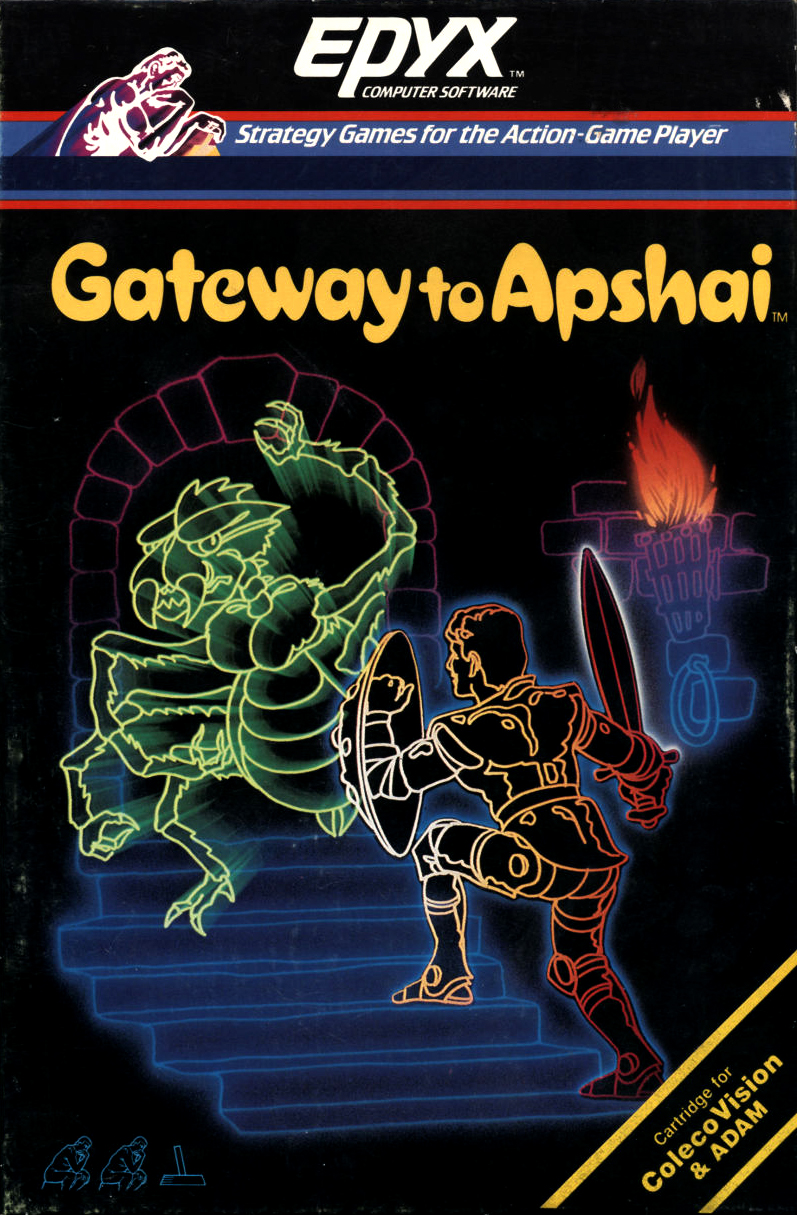 Turmoil rocks the land and the only salvation lies in the magic of the Temple of Apshai. Unfortunately the location of this temple has gotten lost in time. Furthermore, many heros dispatched to seek it have been slain. A legend speaks that only the blood of the greatest hero of Apshai's greatest hero will be able to reclaim the lost Temple of Apshai. Unfortunately this "greatest hero" has also perished. But all hope is not lost, for the wise man, Merlis has found the hero's son, whose blood is still able to fulfill the prophesy. With great haste, Merlis brings the youngster to the dungeon pits and leaves him to fend for himself. It is this youngster's destiny to find safe passage through the 8 levels, each of which contains passage to 99 different areas, Gateway to Apshai is a top-down action-RPG. As the descendant of a hero, the player starts with basic stats in 4 areas, Strength, Agility, Luck and Health. and basic equipment, a dagger and leather armor. Then it's time to choose a number between 1 and 99 to generate the dungeon. Once begun, the player must explore the dungeon, hidden until explored and revealed. The player can move in four directions and has standard abilities, each mapped to a different control. There are several different actions available to the player. These include: fighting with the equipped weapon, a LOCATE spell to discover traps in the room, a SEARCH spell to discover hidden doors inside of room which would otherwise look like ordinary walls. Players may also use many of the items and scrolls that can be picked up in the dungeon. The treasure can be picked up which include weaponry (swords, bows and arrows), healing slaves, precious items and magical scrolls. Most items are only good for a single use. The Gateway to Apshai is guarded by an assortment of creatures including snakes, swamp rats, bats and many more. These enemies are only visible when they are in the same room as the player and are otherwise hidden. After 6 minutes and 30 seconds has passed, the player is teleported to the next dungeon, many versions of the game also offer the option to manually leave the dungeon at any time. Dungeons get progressively more difficult with faster and more vicious enemies.