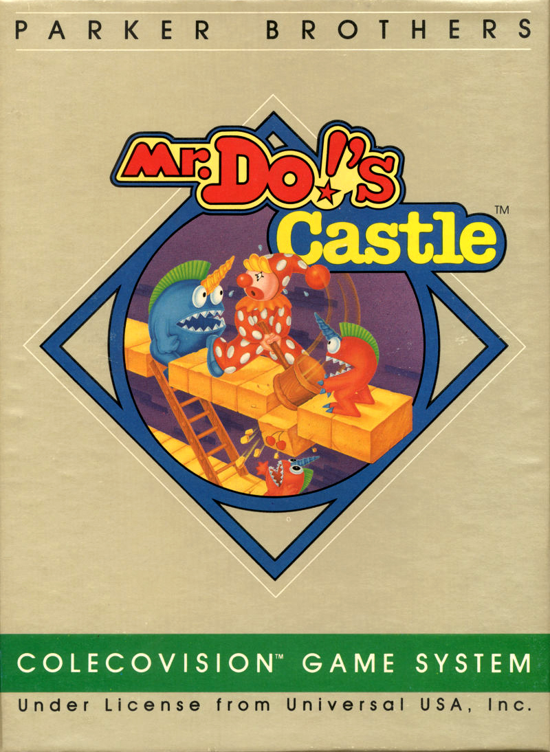 The object of Mr. Do's Castle is to score as many points as possible by collecting cherries and defeating unicorn-like monsters. The game takes place in a castle filled with platforms and ladders, some of which can be flipped from one platform to another. The player controls Mr. Do as he collects cherries by using a hammer to knock out blocks that contain them from the various platforms. Empty holes left by the knocked-out blocks serve as traps for the monsters - if a monster falls into a hole, the player can then defeat it by causing a block above the monster to fall on top of it. If the player takes too long to complete a level, the monsters transform into faster, more difficult forms that occasionally multiply. The game advances to the next level when all cherries on the level have been collected or all enemies have been defeated. The player loses a life if Mr. Do is caught by a monster, and the game ends when the player runs out of lives. The game is an example of the trap-em-up genre, which also includes games like Heiankyo Alien, Lode Runner, Boomer's Adventure in Asmik World, and Space Panic. As in Mr. Do!, the player can earn an extra life by collecting all of the letters from the word "EXTRA". Regular monsters can be changed into monsters bearing the EXTRA letters by collecting all three keys distributed around the playfield and then picking up a magic shield from the top floor. Monsters in this state are easier to defeat than normal, a simple hammer strike will do the job. After a brief interval, they change back into their normal forms. The game also offers a bonus credit for collecting a rare diamond that appears on the playfield at random intervals. The cherry blocks are absent from Mr. Do Vs. Unicorns and early revisions of Mr. Do's Castle. Instead, blocks that are not keys or skulls at the start of a stage will be fill blocks (those left behind when unicorns fall into holes and are left alone for a time). Because of this, there are only three ways to complete a level in this version, versus the four ways to complete levels in Mr. Do's Castle. In addition, in these early revisions, the fill blocks change colors every two stages.