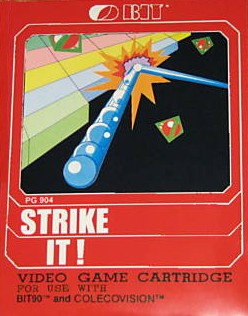 Strike! Strike! Strike! Our "Strike It" is the most interesting TV game between various varieties and high techniques uses the simplest regulation. It is not so easy to hold your pin pon racket to hit the ball and reflecting to the bricks to get high points. So speedy reflection and judgment are necessary. Then you most pay your full attention to the direction and angle of reflection of the ball. Sharp eyesight, speddy hand control and smart judgment are principals to win the game, Try it now !. High Score For The ColecoVision Version Of: Strike It !, Skill Level: 1, -1 Player, Single.