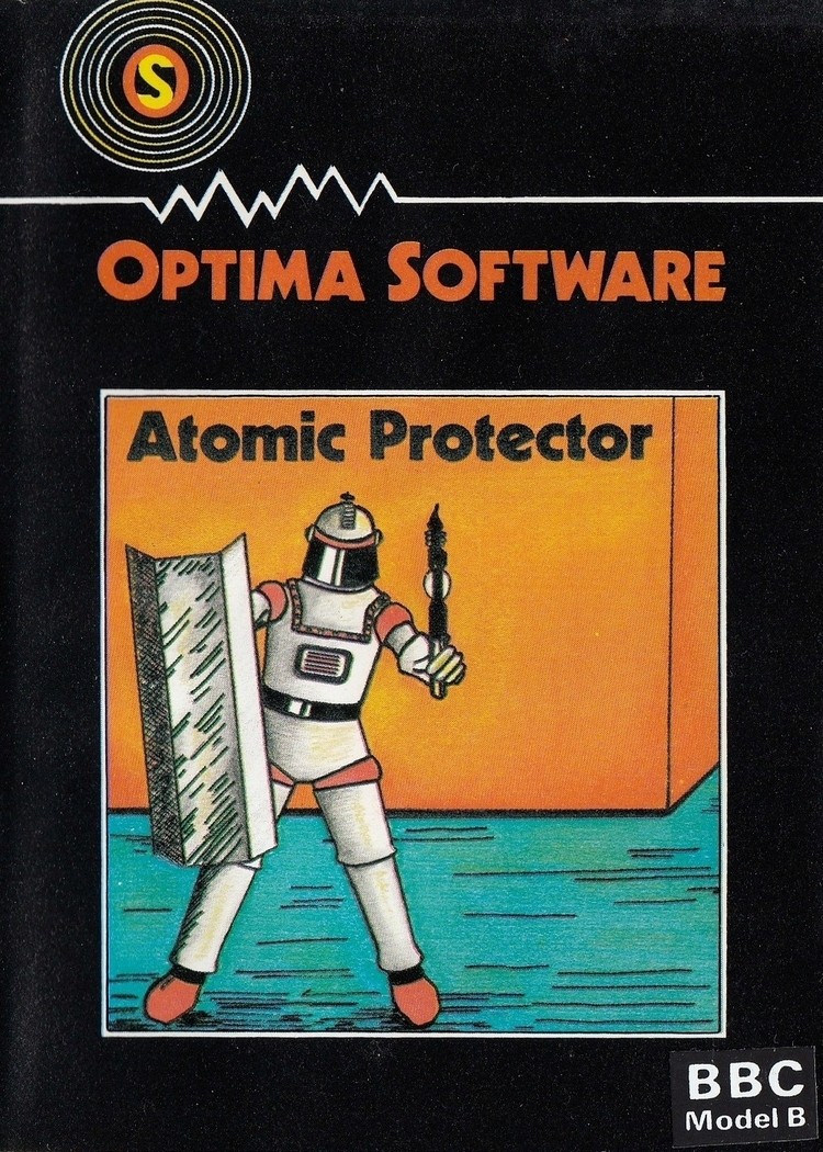 Atomic Protector was programmed by Kevin Edwards and published by Optima Software for the BBC Microcomputer in September, 1983. It is a fast-paced arcade title, like Pac-Man but in reverse. The player has to protect already laid down dots on the map instead of picking them up. The enemies are of two kinds. One will run around the map, picking up all the dots. The other kind is radioactive, and it must be caught before it contaminates you.