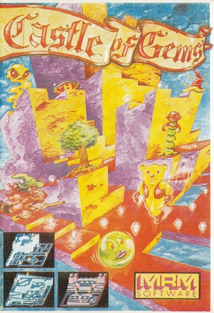 A Crystal Castles type game written by Paul Shave. The idea of the game is for Bertie Bear to collect as many gems as possible that are scattered around the castle. When all the gems have been collected, Bertie moves on to the next of nine different screens. However, Bertie has got company in the shape of Gem Gobblers, Trees, Witches, Ghosts and Gremlins - all of whom are fatal if Bertie collides with any one of them. The Gem Gobblers, Trees and Gremlins are also after the gems so there's a bonus score if Bertie can collect the last gem on a screen. Now and again there's a Magic Hat to make Bertie invincible for a while and a Honey Pot for gaining bonus points. Most of the castles have moving lifts upon which only Bertie may ascend/descend to different levels. If Bertie takes too long on any screen the "baddies" he has killed previously will start to come to life again.