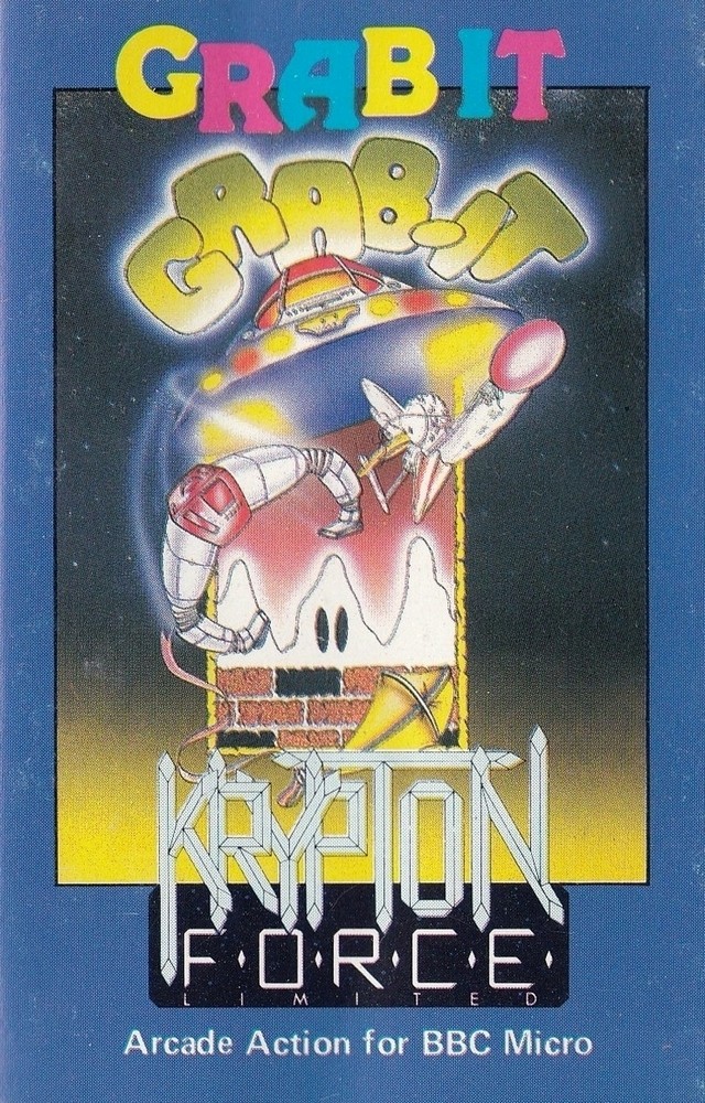 Grab-It is a side view single screen game, written by Dave Ryder, where you control a grabber released by yourself to collect Nadium Blocks to take back to your planet of Cort for your people's survival over six levels. At the top of the screen is your ship and below is the grabber you move around the screen to pick up one of the eight blocks of Nadium at the bottom of the screen. Once you pick up a block, you take it to your ship but there are creatures also on the screen that need avoiding. The first level has one creature with the further levels having various numbers of the creatures and if you touch one then you lose one of three lives. Once all the blocks have been collected then you move to the next level.