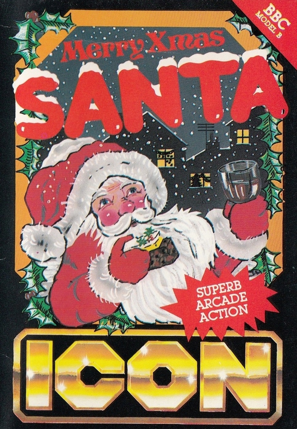 This game was re-released by Tynesoft in 1987 as Santa's Delivery. You play as Santa Claus delivering presents via the chimneys. Collect a bonus by eating pieces of cake and pudding and drinking a glass of Sherry. After the first screen is complete, you will encounter low flying Snowballs which must be avoided by jumping over them. These snowballs will get faster and more frequent as you proceed through the screens. Snowmen will randomly appear on the rooftops and block your path. Later in the game, the icicles at the top of the screen will begin to melt and fall. Avoid these or be knocked off the roof.
