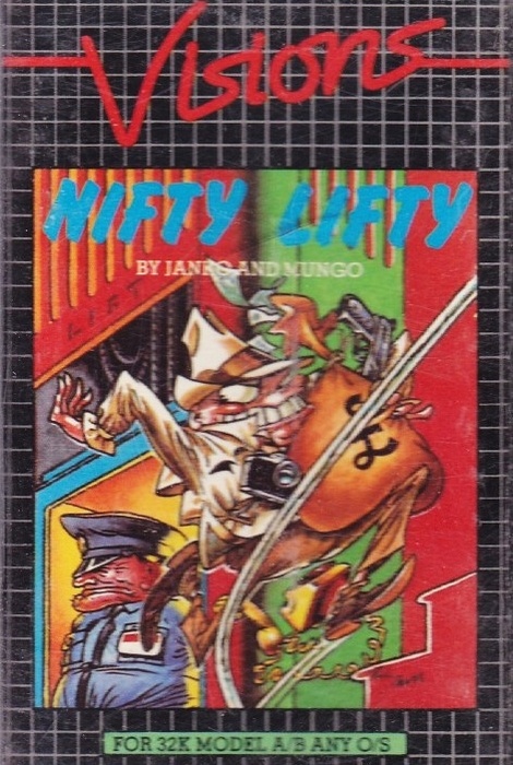 Nifty Lifty is a simple arcade game. The player must collect various items such as hearts, small toy trains, tanks, umbrellas, and climb up while avoiding dangerous lifts going up and down. Each contact with a lift results in a loss of life. The character is controlled with two keys to move left and right. When the edge of the screen is reached, where the arrow is, the game automatically moves the character to the upper floor. A time bonus is provided for completing levels quickly.