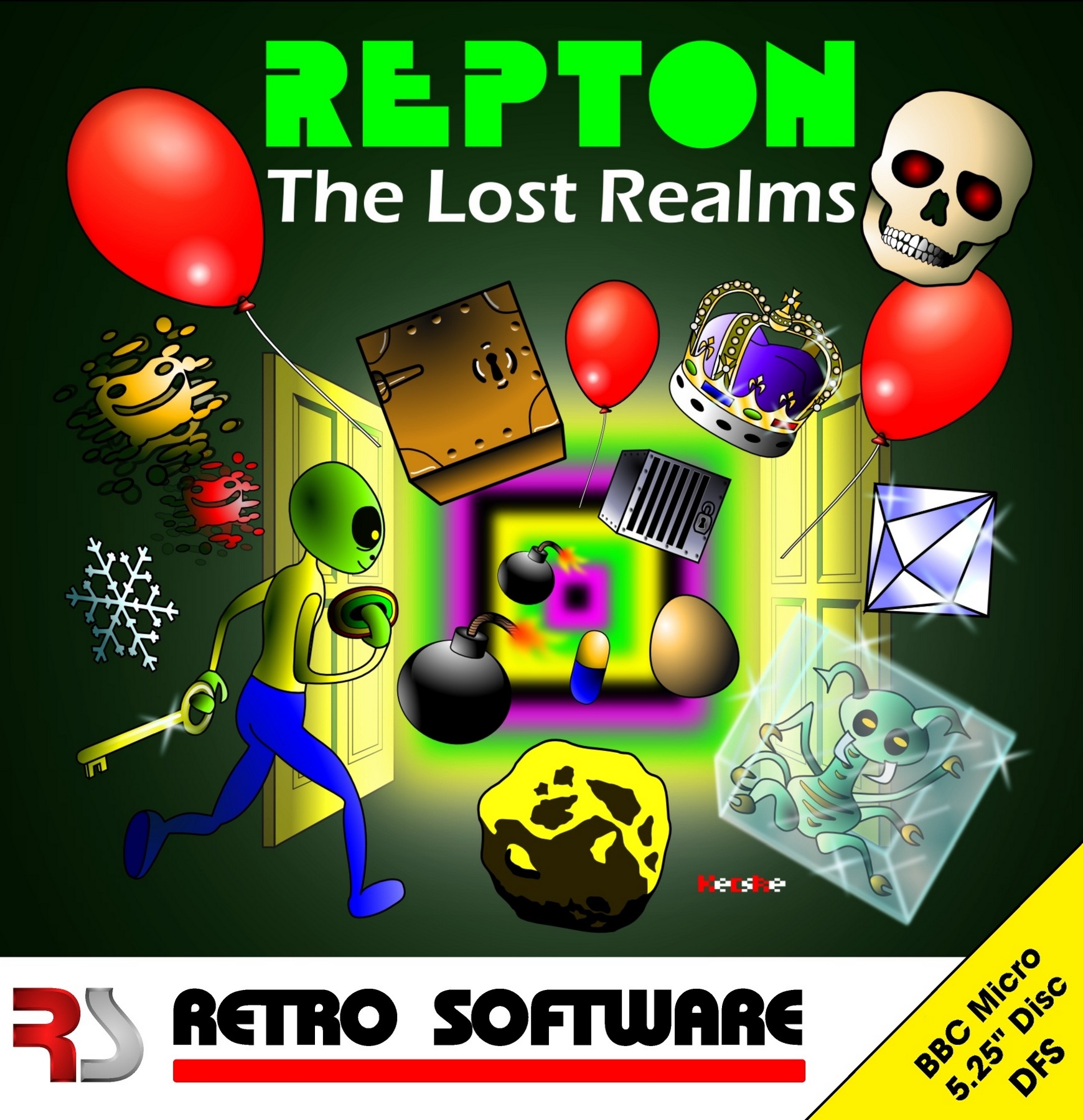 Repton: The Lost Realms was originally intended to be a sequel to Repton 3. It was given the working title Cyroid-X but was shelved by Superior until Retro Software re-worked it and published it. The game consists of 24 levels, the objective of each being to defuse a number of time bombs. Before this can be done however the player has to collect all diamonds and golden crowns and kill all monsters. Failing to do this within a certain time will result in the bombs exploding and the player losing a life. There are a number of puzzles that have to be solved and everything has to be done in a certain order or else the player may block himself in. Therefore it's necessary to plan ahead and pick the right route. As usual the player has to watch out for falling boulders as well as monsters, spirits, skulls and fungus. In addition to boulders this game also features balloons that are equally lethal but float upwards. There are also certain doors that the player can remove only by collecting absorbalene pills. An editor is included to allow the player to modify characters and levels.