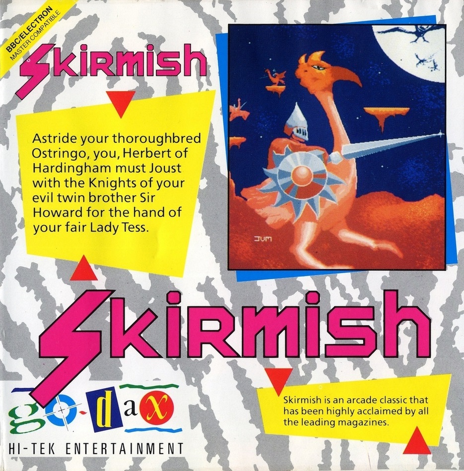 A clone of the arcade game Joust. Note: Aardvark's plans to publish Joust were well advanced, but a licensing deal with Atari could not be struck. Eventually Go-Dax stepped in and released it as Skirmish.