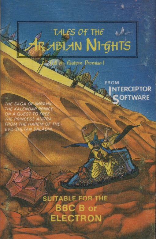 You play as the Prince as you journey over eight levels avoiding various obstacles, guards and nasties to rescue your sister Anitra from the Sultan. The game is split into two styles, a platformer with the whole level shown on one screen and a horizontal scrolling game viewed from the side. The platform sections see you in various locations and you must collect six jugs with the letters to spell the word Arabian which must be collected in the correct order. You can climb ladders and ropes while jumping up to higher platforms. Don't fall too far as this will kill you. The scrolling sections are between the platform levels and the first one sees you on a raft avoiding crocodiles or falling rocks. In other sections you fly on magic carpets avoiding other carpet flyers and nasties.