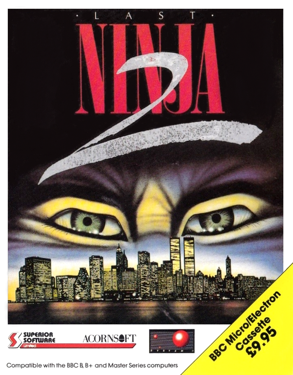 Last Ninja 2: Back with a Vengeance is an action-adventure video game developed and published by System 3 for the Commodore 64, ZX Spectrum and Amstrad CPC in 1988 as a sequel to the 1987 game The Last Ninja. The Acorn Electron, BBC Micro, 1990: Amiga, Atari ST, DOS and NES ports followed in 1989. The NES version of the game was named simply The Last Ninja. In 1990, the Last Ninja Remix edition of the game was re-released for 8-bit systems. The player, controlling a ninja, must fight his way through various levels populated by opponents, collecting necessary items in the process. Each level depicts a different locale and is divided into several screens. The game is presented in an isometric view and the ninja can move in four different directions and jump