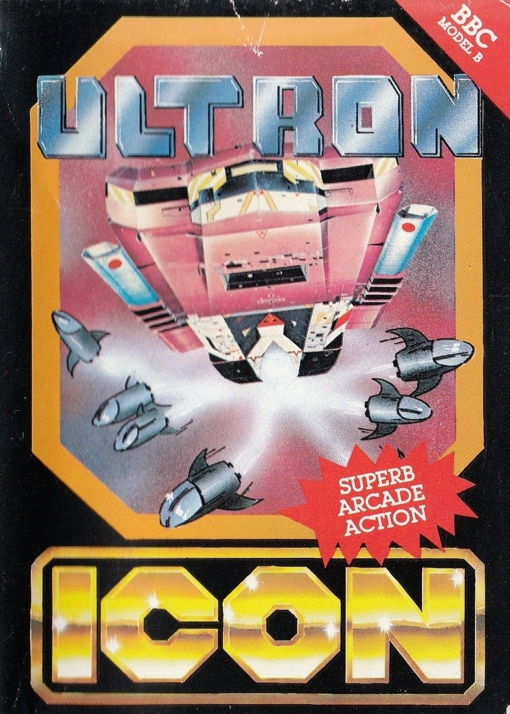 Ultron (working title Gorfon) was Written by Gary Partis for Audiogenic and was the sequel to his earlier game Positron. Not to be confused with an Alligata game of the same name published by Viper. The year is 2673 AD and the galaxy is under siege by aliens from the planet Gorfia. Your mission is to blast your way through wave upon wave of oncoming aliens, surviving long enough to take on and destroy the nerve centre of the alien attack - the Mothership. To do this, you have been given command of the most advanced space fighter in the Universe - the Ultron. You begin your mission as a Cadet, but may rise through the ranks and become the ultimate Space Master. There are eight ranks to go through. Four screens go together to make up one wave. The screens are... Space Swarmers: swarming mutants who release hordes of homing missiles. Galactic Imps: approaching infantry whose sole aim is to infiltrate your defences. Space Warp: aliens that loom out in 3D distracting you with the aim of disintegrating your craft. Mothership: the aliens' supreme commander, situated in the nerve centre of the Mothership. Occasionally, a reconnaissance ship will fly past, dropping missiles.