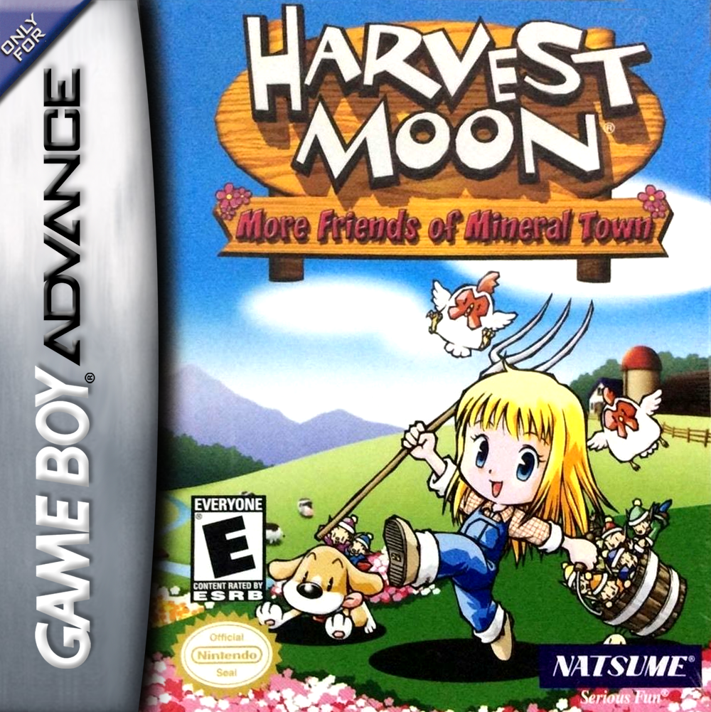 Live the simple life as a farmer in Harvest Moon: More Friends of Mineral Town. This game is similar to the original Harvest Moon: Friends of Mineral Town, but now you can play as a girl who has left the city to pursue a life on the farm. You'll take part in growing crops, managing livestock, finding a husband, and raising children.