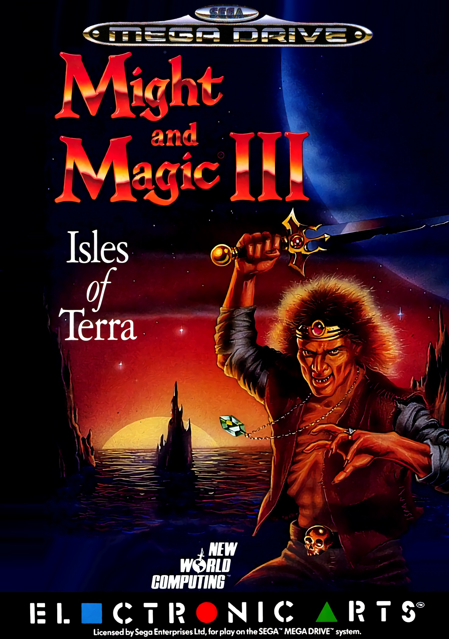 Might and Magic III: Isles of Terra is an RPG released as part of New World Computing's Might and Magic series. It was brought to the Sega Mega-CD by CRI and released exclusively in Japan. A version for the Sega Mega Drive was once in the works, but was cancelled for unknown reasons. A prototype ROM indicating prospective publishing by FCI and development by New World Computing was since released on the internet.
