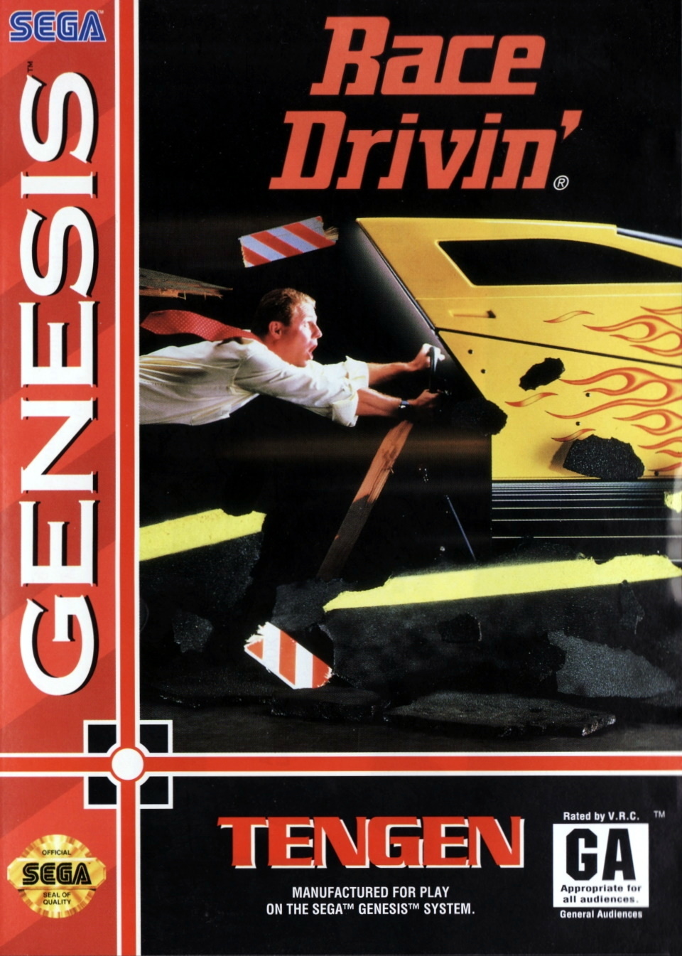 Here it is... the amazing conversion of the smash arcade sensation brings screaming-fast car racing to the Genesis! Pound the pedal and grind those gears, down the straights and around wicked hairpin turns. Whip through hairy S-curves, gut-flipping loop-the-loops and crazy corkscrews! With three cars to choose from, multiple music tracks and cool sound effects, Race Drivin' brings arcade-style auto speed competition to the Genesis!