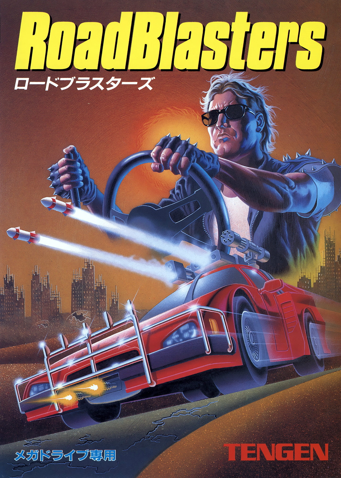 THE DEADLIEST RACE OF YOUR LIFE! Imagine a time and place where no laws govern the highways. When every driver is out to get you. This is the world of RoadBlasters! Sitting behind the wheel of a super high-performance car, you face a unending stretch of deadly highway. Blast your way through speedy Stingers, armored Command cars, evasive Rat Jeeps and darting Cycles. Your driving skills will be tested to the max by roadside gun turrets and bombs thrown by enemy vehicles. Collect fuel globes - you'll need them. More fuel will be awarded as you reach each checkpoint and rally point. To even out the odds, a support jet will drop special weapons, such as cruise missiles, Nitro Injectors, U.Z. Cannons or Electro-Shields. Pick them up and you just might survive...to race another day!