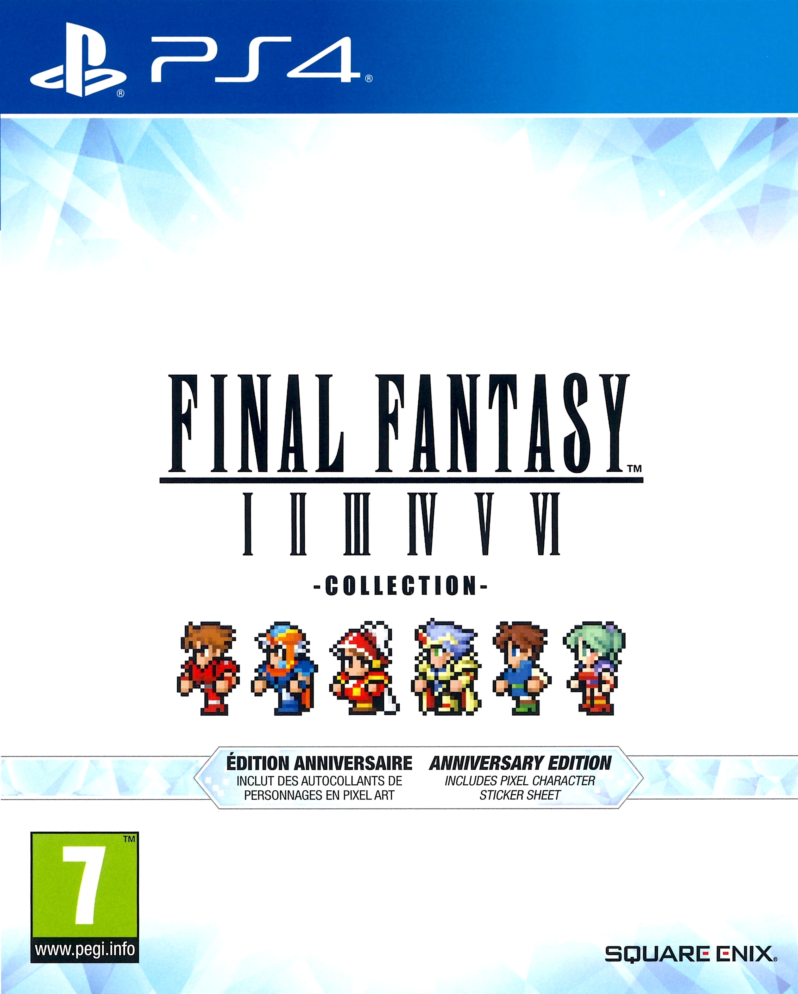 This highly anticipated set includes the physical packaged version of FINAL FANTASY I-VI COLLECTION (PS4 or NSW), the Anniversary Edition GOODS BOX which contains a vinyl record set featuring newly arranged game music, a specially compiled artbook showcasing beautiful character pixel art, and 8 stylised pixel art character figures, and a bonus lenticular sleeve for the game package.