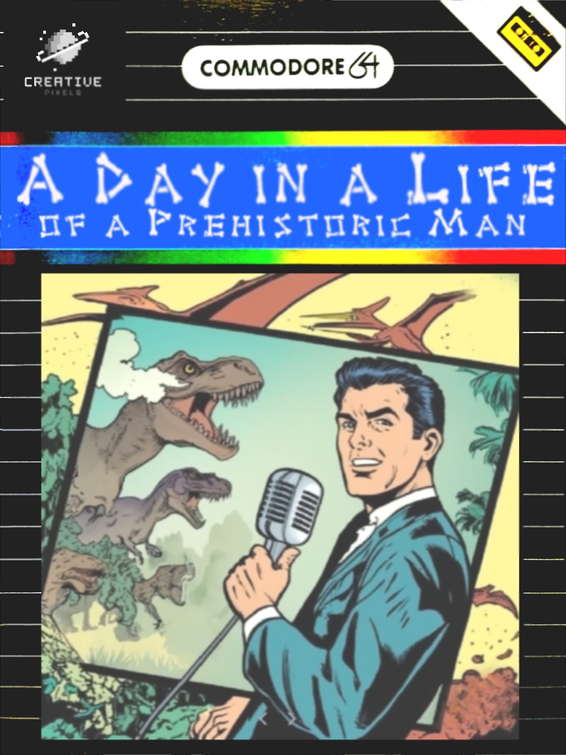 A Day in the Life of a Prehistoric Man is a collection of six mini-games presented in the form of a TV show about an average day in the life of a prehistoric man as he battles for survival against various dinosaurs and animals. The show is presented by Salisbury Smythe on Public Network Television and as well presenting the start of the show, there are also presentations from him between each game explaining the situations you find yourself in and the creatures you encounter. The six mini-games are: