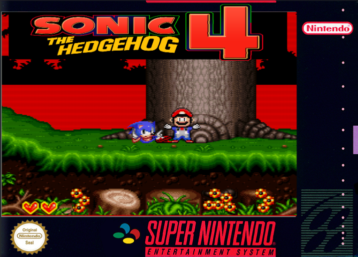 Sonic the Hedgehog 4 is a bootleg pirate game for the SNES by Peruvian scene organization Twin Eagles Group. This it is a hack of Speedy Gonzales: Los Gatos Bandidos. Here, Sonic duty and missions is to save Marios from cages (upon which the latter exclaims: "MARIO!!!" while jumping). The game maybe freeze after four levels on some emulators.