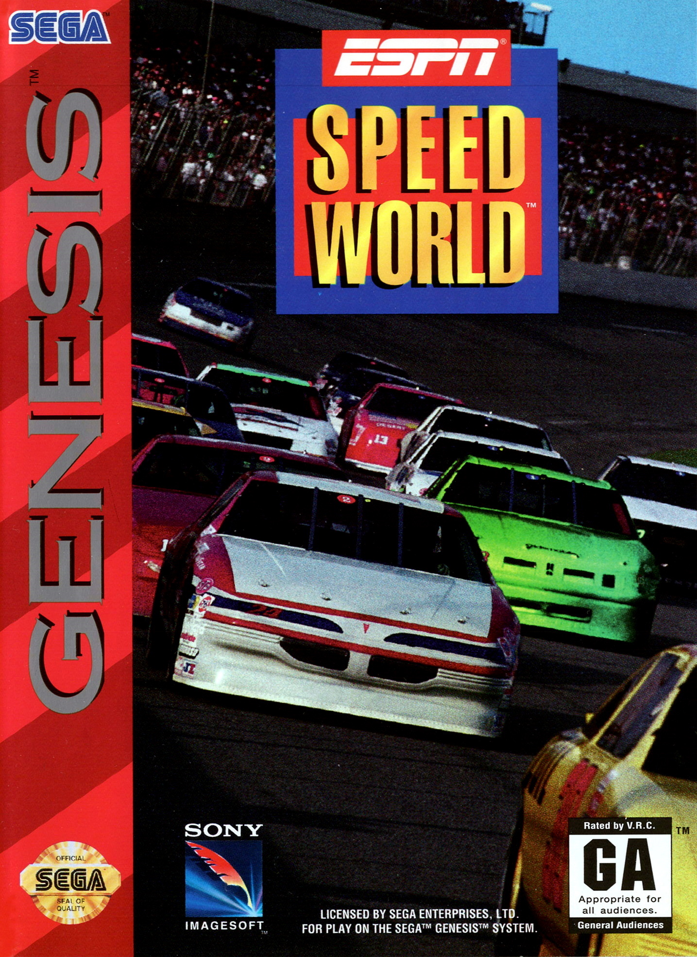 ESPN Speed World is a generic racing game that is made to resemble NASCAR. The player is given a stock car and can tune the car from the angle of the spoiler, to the setting of the shocks, and up to the pressure of the tires. There are three different types of speedways to race on: Super Speedway, Short Track and Road Courses with 5 different tracks for each to choose from. Players can choose to race against the computer that has all 23 other stock cars on the track at once or play head-to-head on a split screen against a friend.