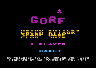 Gorf est composé de cinq missions qui s'inspirent des autres shoot 'em up de l'époque tels que Space Invaders ou Galaxian. Il possède des spécificités comme le laser quark qui permet d'annuler le tir en cours pour pouvoir tire de nouveau. La mission finale confronte le joueur à l'un des premiers boss des jeux d'arcade.