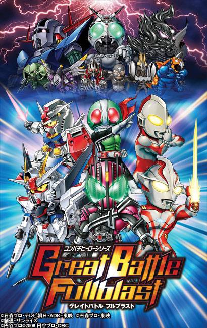 Become the "Battle Ball King" in Battle Dodgeball 3, a bonus disc game released only with the Twin Battle Box, a special edition of Great Battle Fullblast, a game in the Compati Hero Series. It was released to commemorate the 20th anniversary of the Great Battle franchise. Like the other Compati Hero Series games, it prominently features characters from popular Japanese tokusatsu live-action shows and mecha anime, including Ultraman, Gundam, and Kamen Rider. The main game is a story mode that tells about a legendary dodgeball ("Battle Ball") tournament. During a time of peace, three mysterious artifacts appear from the ocean and a tournament is announced. The winner will be the one able to gather all of them and be crowned the new Battle Ball King. There is also a Super Battle League Mode, which will pit you against up to 15 different teams, or you can have practice versus matches in the Training Mode.