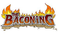 The Baconing is the third game in the DeathSpank series. It follows DeathSpank in an adventure to defeat the evil AntiSpank. DeathSpank must travel the land to destroy five of the six Thongs of Virtue in the Fires of Bacon. Once he is successful he can defeat the AntiSpank and bring peace to SpankTopia.
